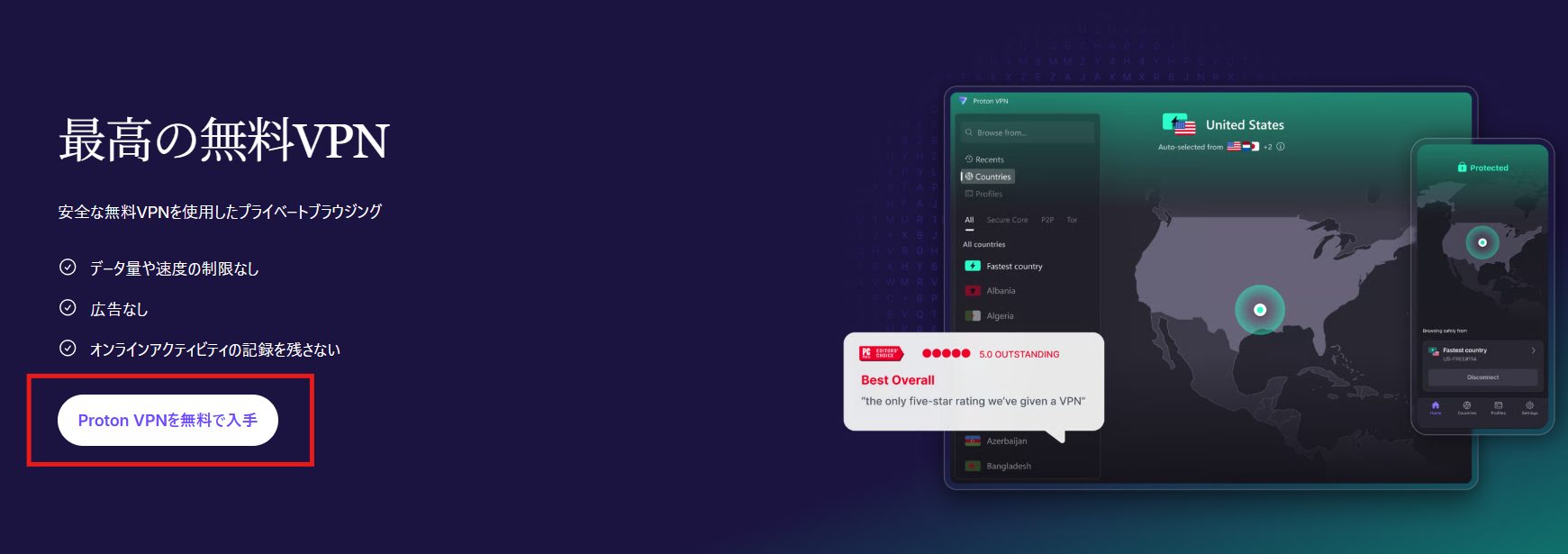 VPN無料トライアルを探しているなら、Proton VPN以外の選択肢はありません。